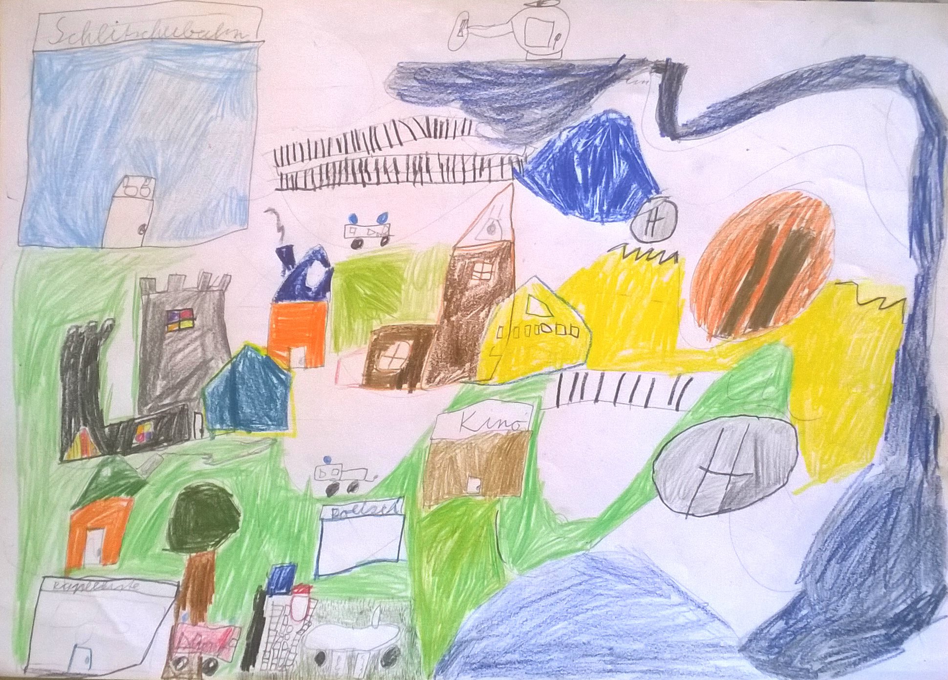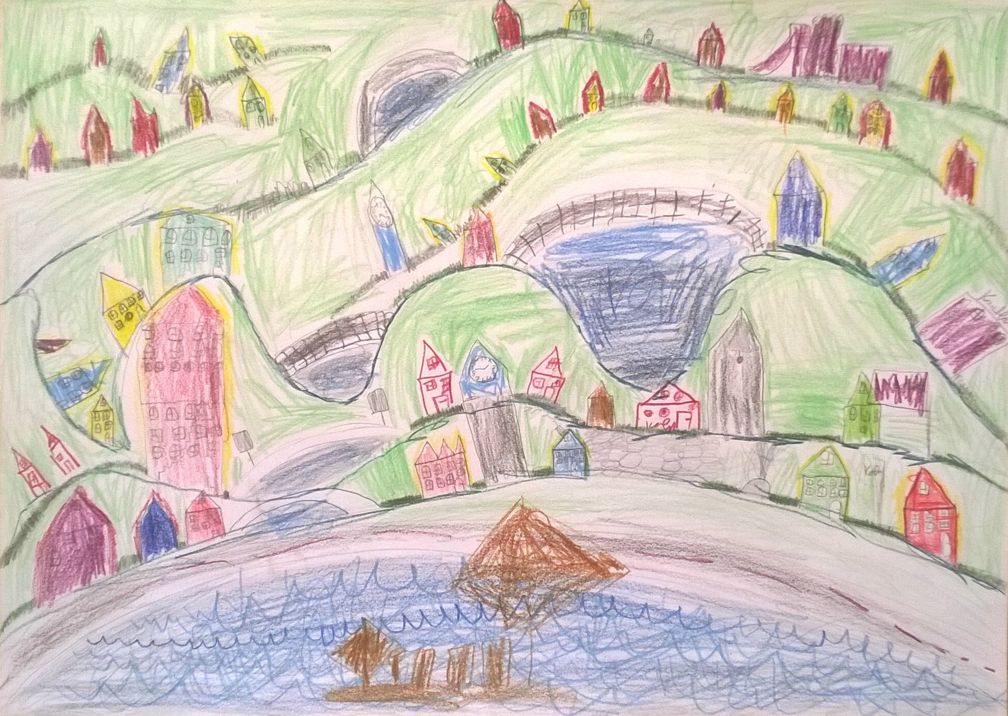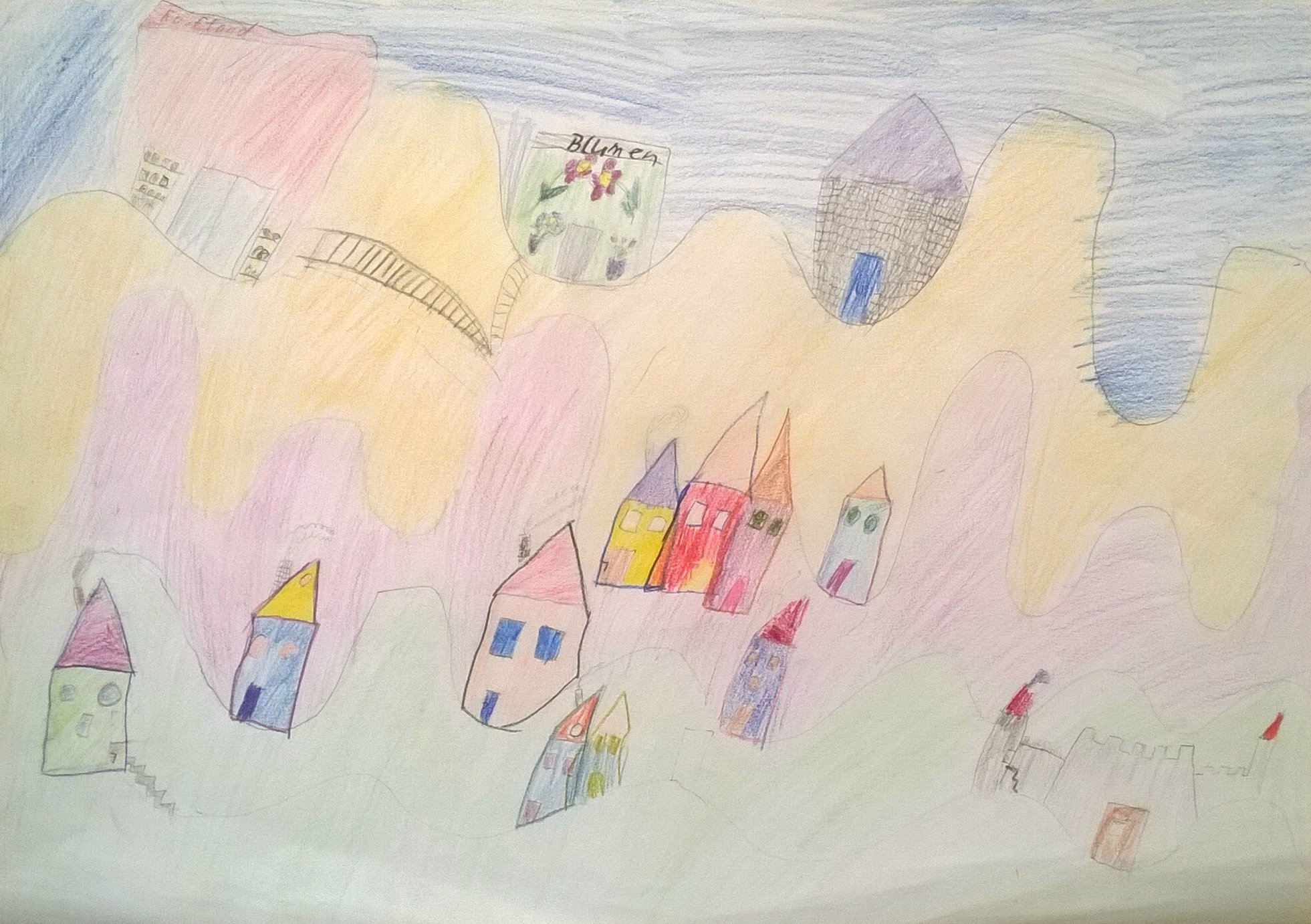 Auch hier lohnt es sich, jedes Bild näher im Detail zu betrachten. Wogende Städte - in wogenden Farben! Die Umrisse gelb, die Flächen