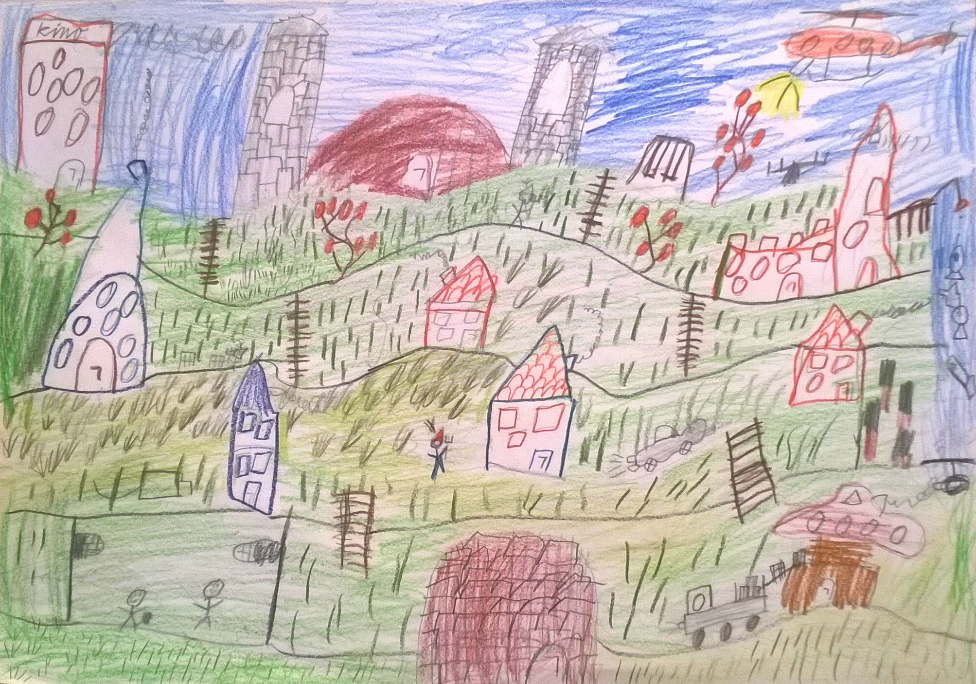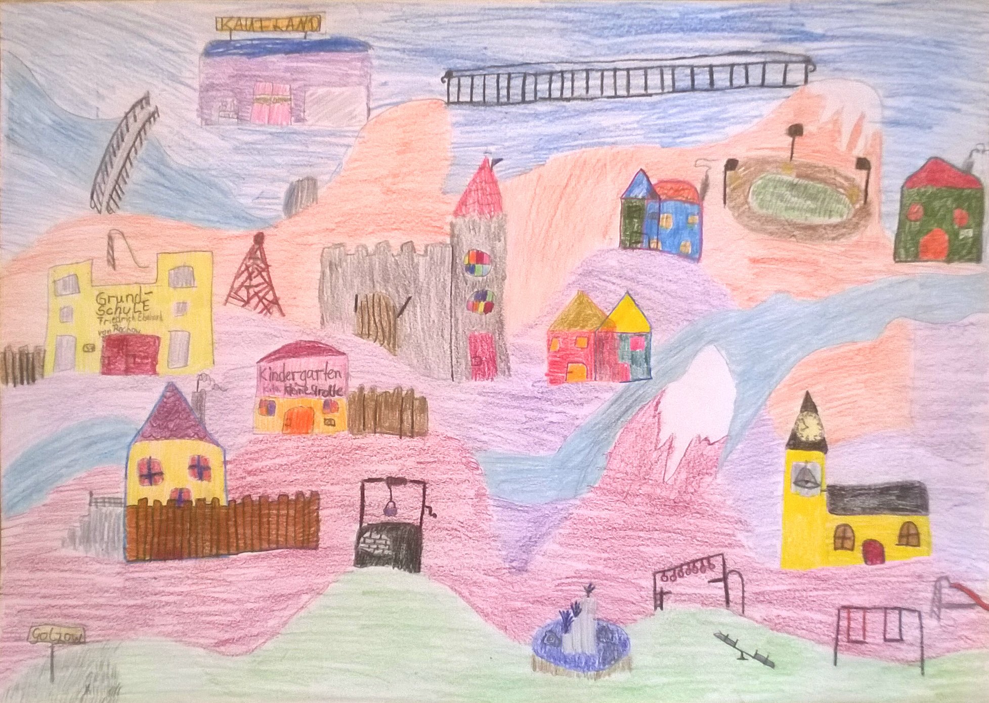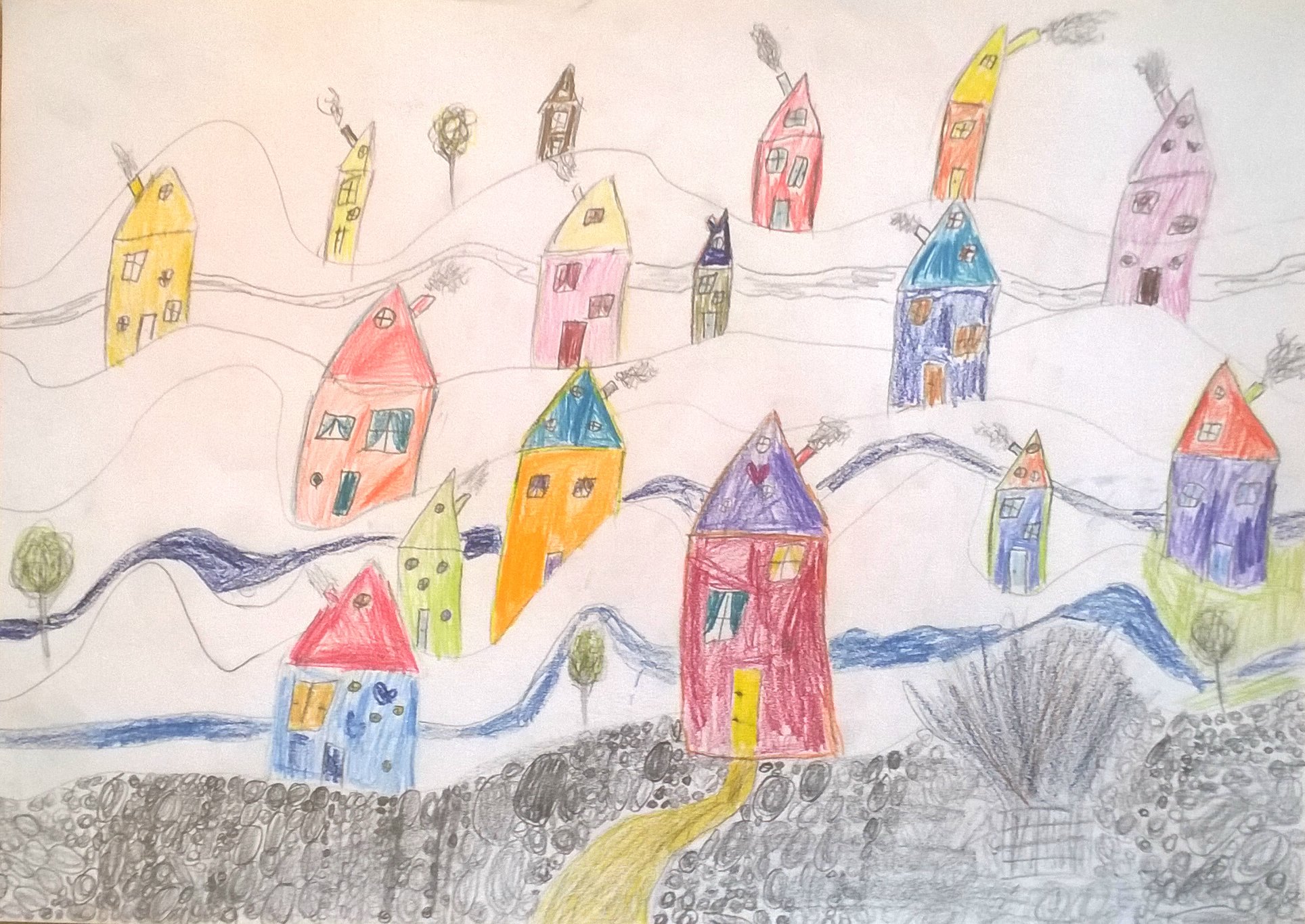 Auch hier lohnt es sich, jedes Bild näher im Detail zu betrachten. Wogende Städte - in wogenden Farben! Die Umrisse gelb, die Flächen