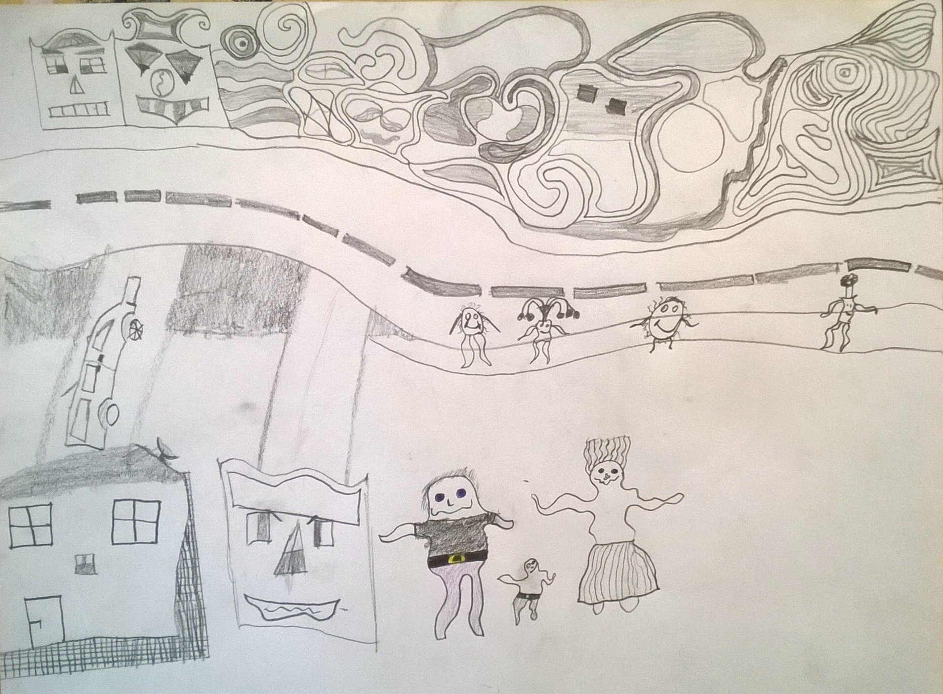 Die schwarz-weiße Zeichnung von Johanna Krause zusammen mit einer anonymen Schülerin ist in der Technik Lithographie gedruckt. Was ist das? Lest hier mehr zum Thema